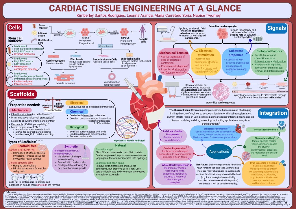 This group poster presentation, which won first place out of a cohort of 200 peers, focused on innovative approaches to cardiac tissue engineering. I researched and presented on the potential for using biomaterials and stem cells to regenerate heart tissue after damage. The project also involved extensive literature review.