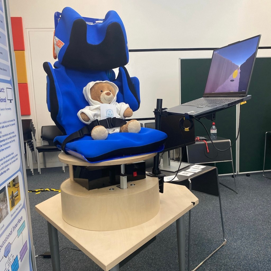 The computational aspect involved the creation of a game that worked in sync with the rig and electronics, accurately providing visual feedback to mirror the observed movements.
