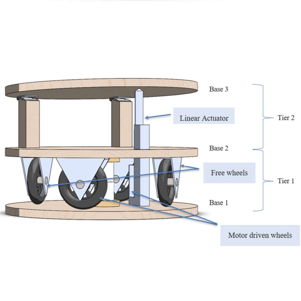 - Middle layer – to house the electronics used, to act as an attachment point for the monitor and to hold up the linear actuator